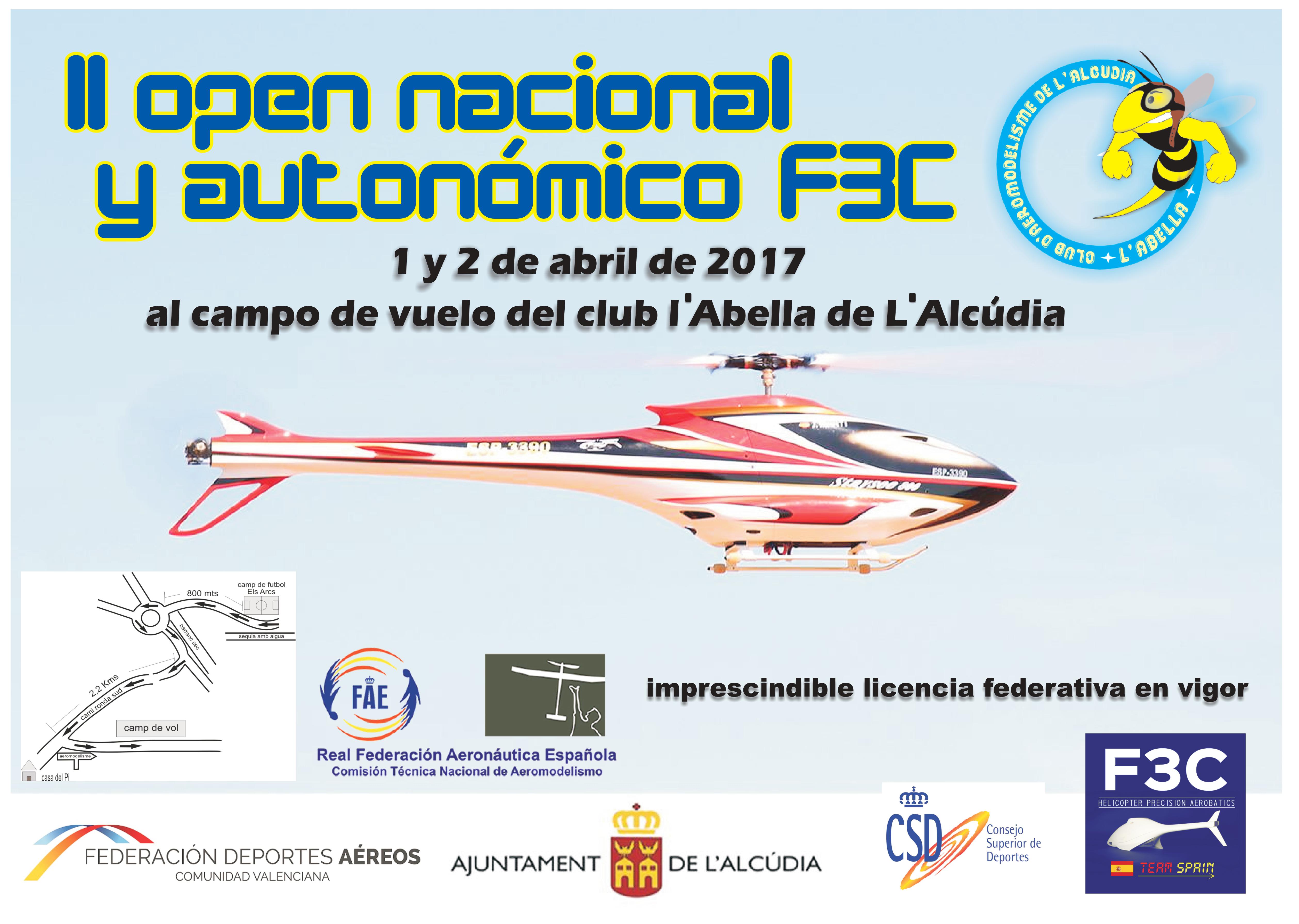 Os informamos que los próximos días 1 y 2 de abril de 2017 el Club Aeromodelismo L'Abella de L'Alcúdia celebrará el II Open Nacional y Autonómico F3C en el campo de vuelo del Club L'Abella de L'alcúdia.