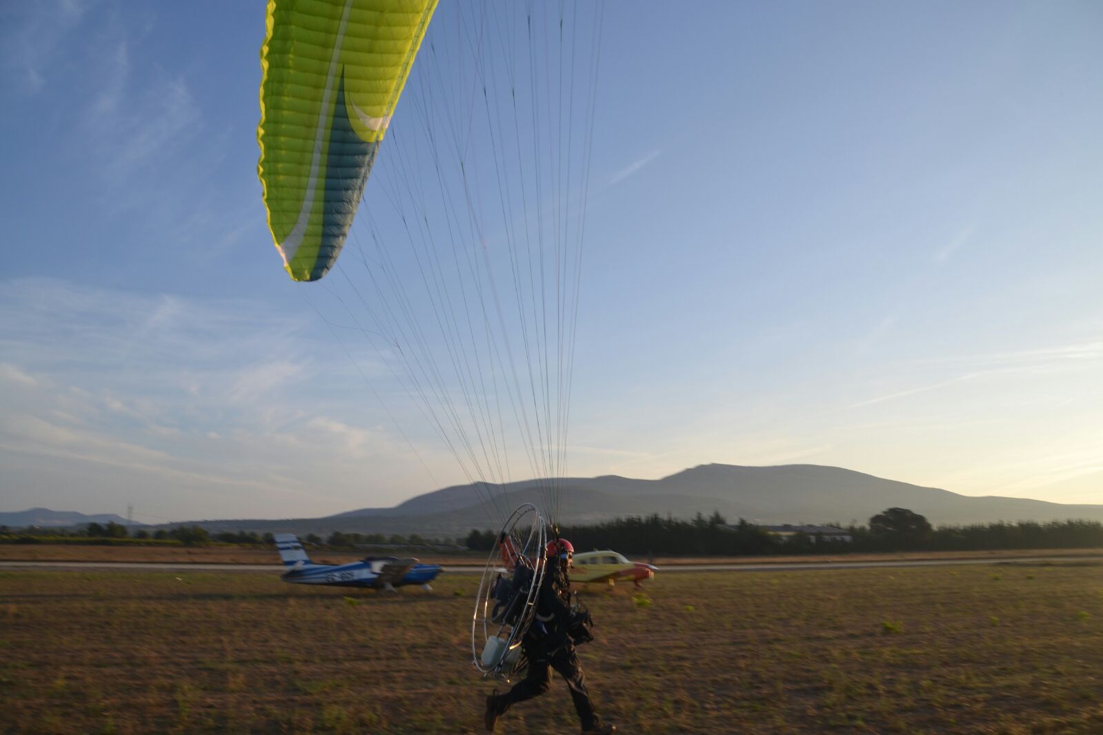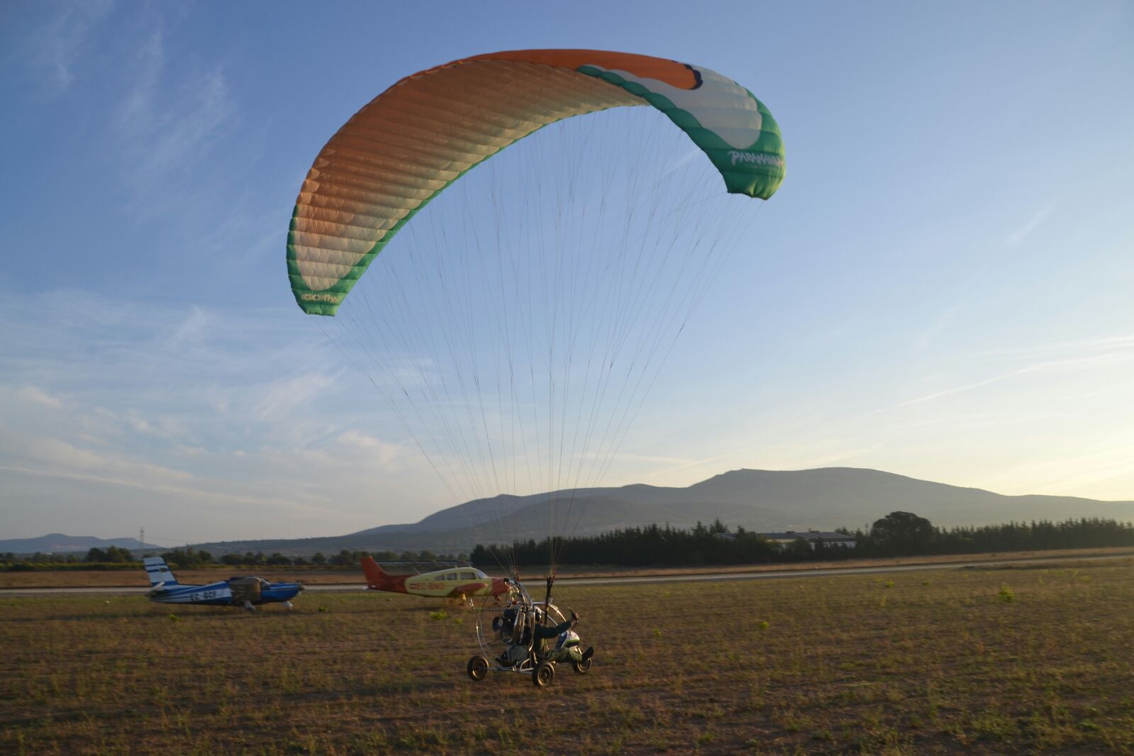 Los más madrugadores en acudir a la cita fueron los deportistas de paramotor, pues para poder aprovechar las primeras horas del sábado, las más propicias para sus características de vuelo, muchos de ellos acamparon en el propio aeródromo ya el viernes, de tal modo que a las ocho de la mañana del día siguiente se encontraban ya en el aire, dando inicio a su primera prueba de navegación que, por espacio de unas dos horas, iba a llevarles a recorrer la comarca de Requena-Utiel.