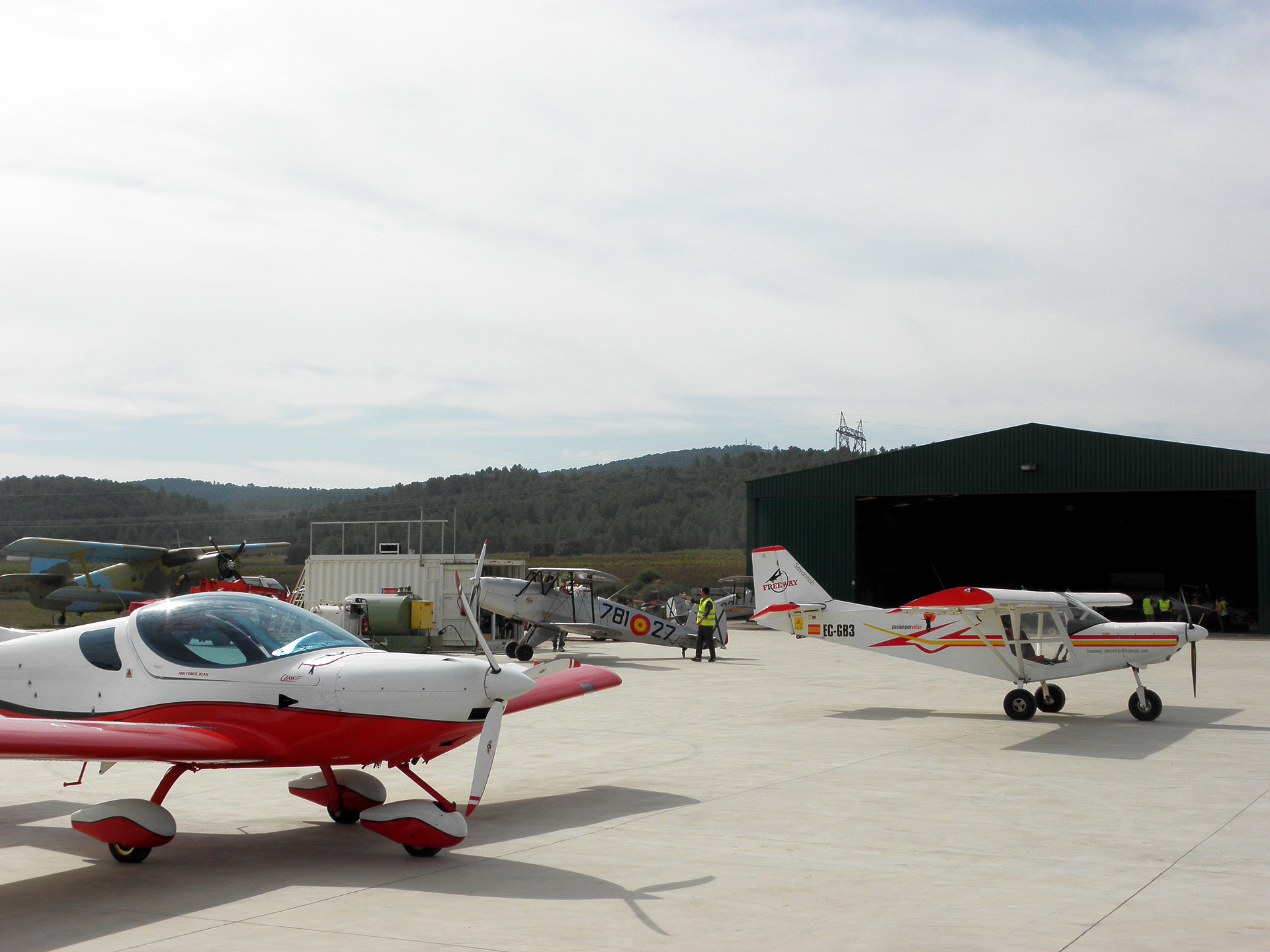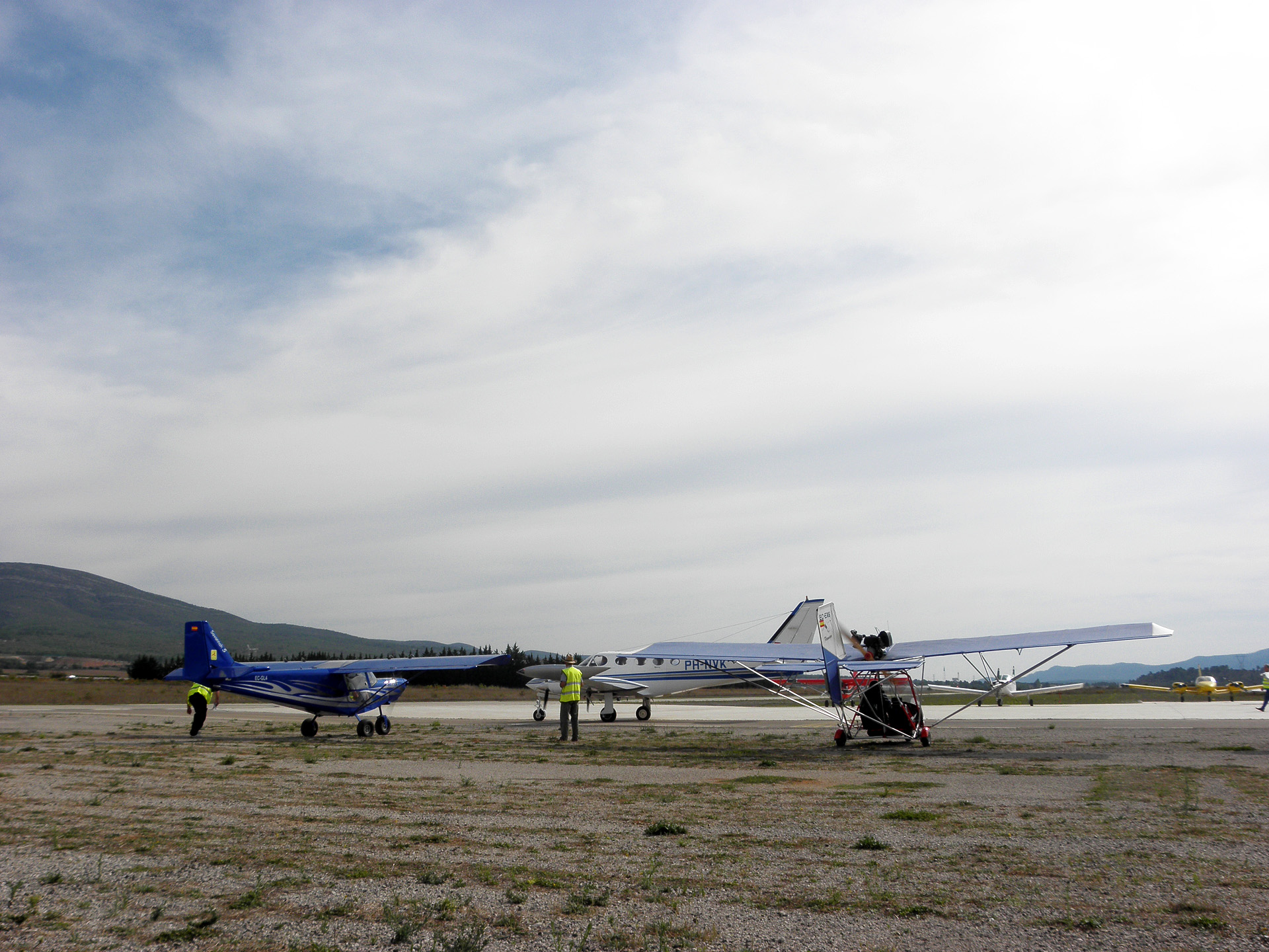 El aeródromo, por su parte, no se encontraba cerrado al tráfico, por lo que conjuntamente con las pruebas deportivas, se compaginaban diversas operaciones de aeronaves de aviación general y, de forma destacada, los vuelos de varias de las aeronaves de la Fundación Aérea de la Comunidad Valenciana (FACV). Las pasadas en solitario y en formación de aviones históricos, en este ocasión dos biplanos Bücker Bu-131 Jungmann y un monoplano AISA I-11B, levantaron la admiración de los asistentes y contribuyeron de modo muy especial al espíritu aeronáutico del evento. Entre estas operaciones también cabe resaltar los vuelos de entrenamiento que llevó a cabo una aeronave RV8, efectuando diversos ejercicios acrobáticos sobre el aeródromo, incluso con el empleo del generador de humos, que aportaron un elevado grado de espectacularidad.