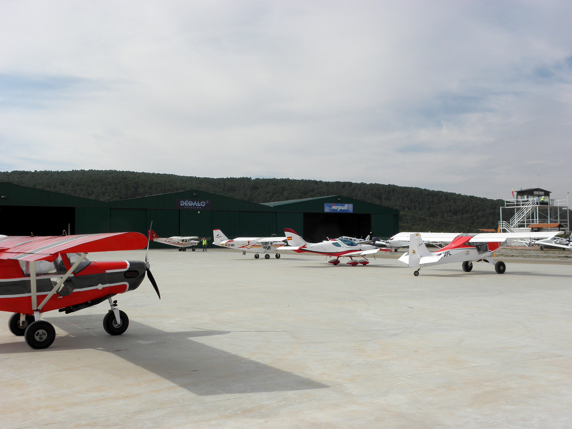 Tras la cena en el restaurante del aeródromo, y la consiguiente carla aeronáutica acompañada de cafés, algunos de los participantes volvimos a hacer noche en el aeródromo, acampados cerca de nuestras aeronaves, y esperando que la meteorología mejorase para el día siguiente.